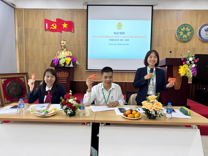 Ngày 10/11/2025, Công đoàn Khoa Kế toán và Quản trị kinh doanh - Học viện Nông nghiệp Việt Nam đã tổ chức Đại hội Công đoàn nhiệm kỳ 2025-2030 với sự tham gia của 51 đoàn viên công đoàn khoa. Đến dự và chỉ đạo Đại hội có đồng chí Đặng Đức Hoàn - Ủy viên Thường vụ Công đoàn Học viện Nông nghiệp Việt Nam. Trong nhiệm kì 2023 – 2025, Ban Chấp hành Công đoàn Khoa Kế toán và Quản trị kinh doanh đã từng bước trưởng thành, thể hiện vai trò của mình trong các hoạt động chuyên môn cũng như hoạt động phong trào, đời sống nhằm tăng thêm sự gắn bó, đoàn kết của CBVC trong khoa. Nhờ vào sự chung tay của toàn bộ tập thể, Công đoàn Khoa đã đạt được nhiều thành tích tập thể và cá nhân đáng khích lệ: Giải nhất thi Gói và trưng bày mâm cỗ tết 2024; 01 giải Ba và 01 giải Khuyến khích Hội thảo khoa học nữ do Học viện tổ chức dịp 20/10/2024; 01 giải Nhì và 01 giải Khuyến khích Hội thi thiết kế và giảng dạy E – learing dịp 20/11/2024; giải Nhì giải bóng đá nam truyền thống Học viện năm 2024; giải Nhì thi gói bánh chưng và trưng bày mâm cỗ tết năm 2025; giải Khuyến khích Hội chợ Xuân 2025; giải phong cách thi bóng chuyền năm 2025; 02 giải nhất, 01 giải nhì; 02 giải ba; 01 giải sáng tạo; 02 giải khuyến khích, 02 giải triển vọng cuộc thi vẽ tranh Ngôi trường xanh dịp trung thu năm 2025; 01 giải Ba; 01 giải Khuyến khích cuộc thi Ảnh VNUA; 01 cá nhân trong BCH CĐ Khoa nhận bằng khen của Bộ nông nghiệp và Phát triển nông thôn năm 2024.